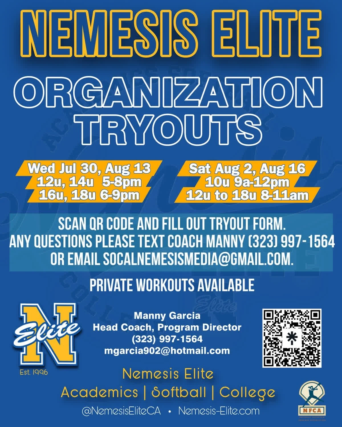 You can also write to socalnemesismedia@gmail.com or text Coach Manny at 323-997-1564.
